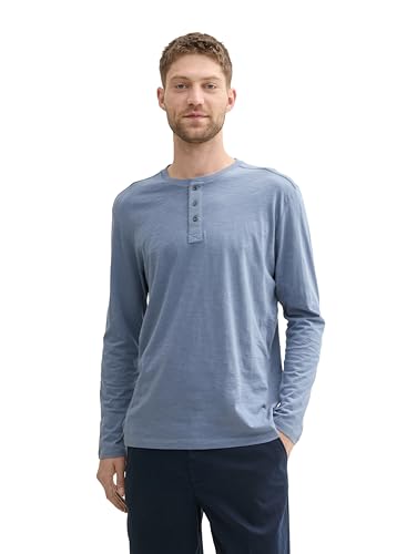 TOM TAILOR herr Henley långärmad tröja, 38224 – Real Teal Blue, L
