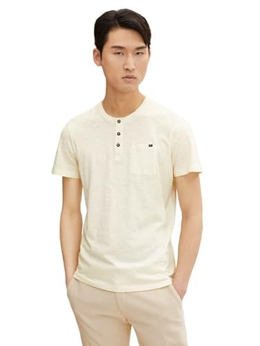TOM TAILOR Herr henley tshirt med bröstficka 1032412, 28130 - Soft Buttercream, XXS