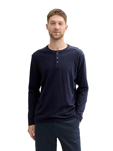 TOM TAILOR herr Henley långärmad tröja, 10690 - Stickad marinblå, XXL