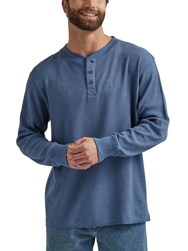 Wrangler Authentics Henley-skjorta, herr, långärmad, våffelmönstrad, Humör Indigo, 3XL