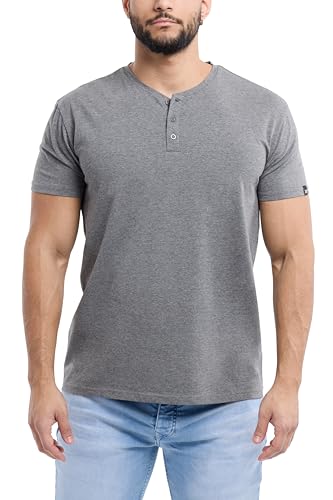 LAOARA Herr Henley Teeshirt kortärmad öppen knapp krage T-shirt herr, Färg: grå, S