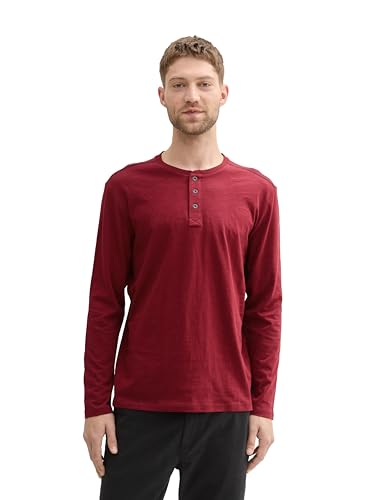 TOM TAILOR herr Henley långärmad tröja, 13721 – Vinröd, L