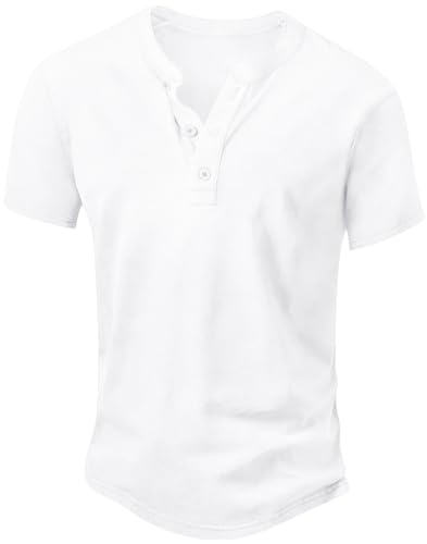 NITAGUT Henley herr-t-shirt bomull lätt slim fit kortärmad fritidsskjorta vintage stressed teskjortor, S–XXL, Vit, M