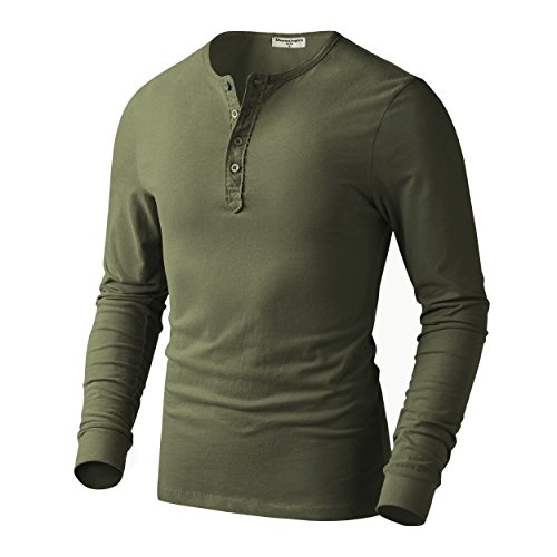 Derminpro Herr Henley bomull casual kort/långärmad lätt knapp t-tröjor, Armé # Henley hals, XL