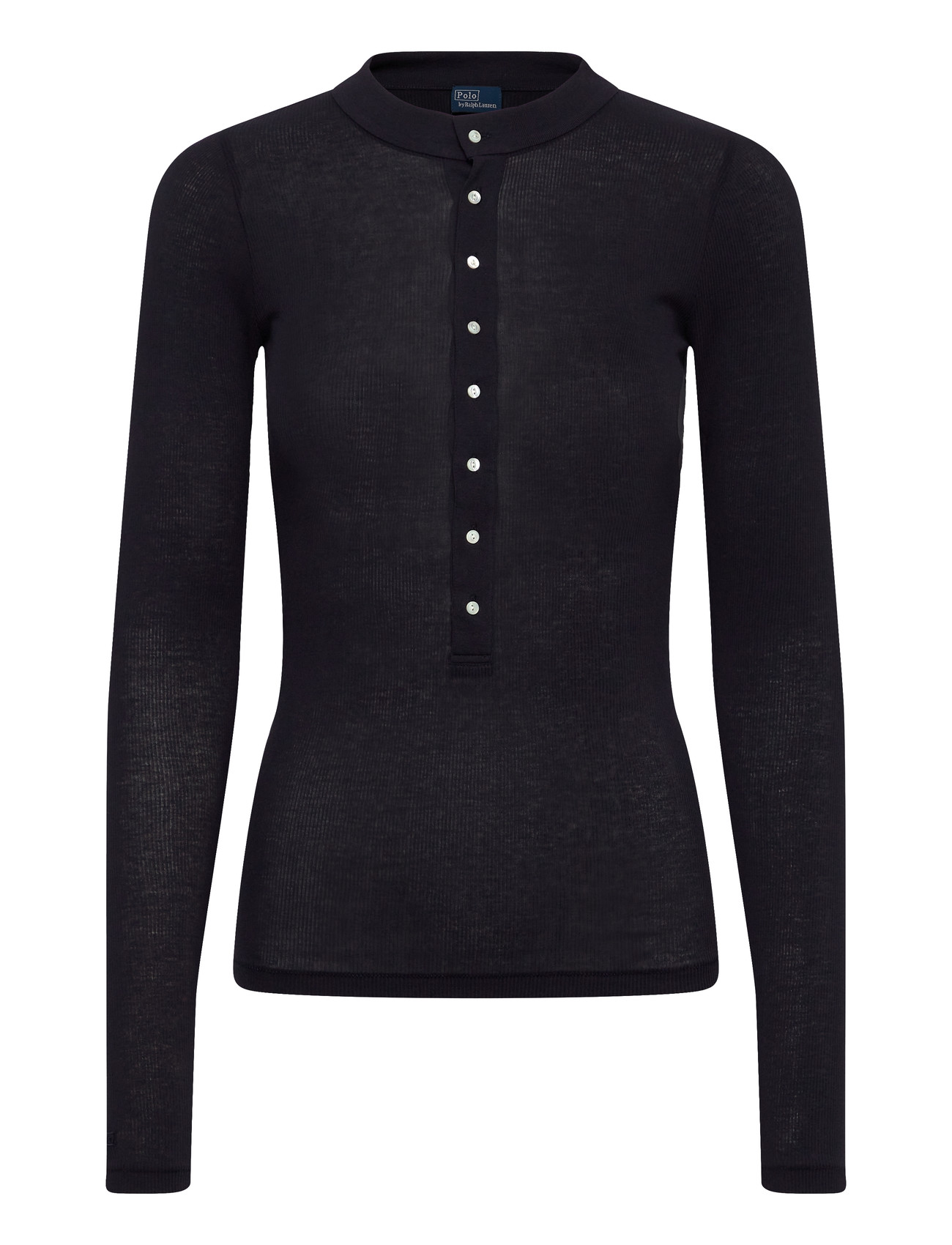 Polo Ralph Lauren Ribbed Cotton Henley Shirt - Black - XS