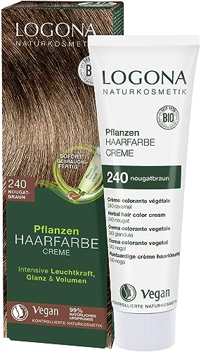 LOGONA Naturkosmetik växt hårfärg kräm 240 nougatbrun, brun naturlig hårfärg med henna, brun ton färgkräm, färgning för mörkt hår, 150 ml