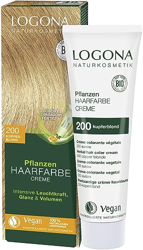 LOGONA Naturkosmetik växt hårfärg kräm 200 kopparblond, naturligt hårfärg med henna, färgkräm, hållbar färg, 150 ml