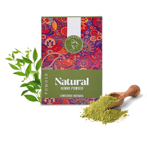 AATMANA Henna Powder | Lawsonia Inermis | Hennapulver | Naturligt glänsande hår | stjälkar och reparerar hårskada | herr och dam naturlig hårfärg - 100 gram