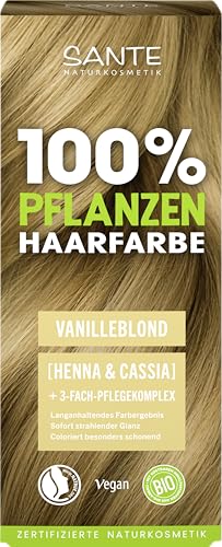 SANTE Naturkosmetik växthårfärg – vaniljblond – 100 g – naturlig färg med ekologisk henna & cassia – hårfärg utan ammoniak och peroxider – vegansk och dermatologiskt testad