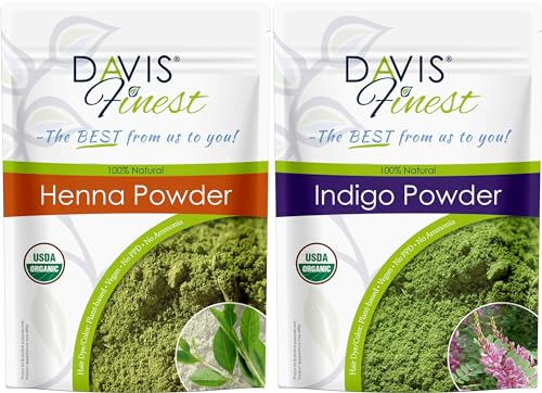 Davis Finest Henna & Indigo Powder Pure Hair Dye 500 g, kombinationspaket - ekologiskt, 250 g Henna & 250 g indigo, naturlig hårfärg skäggfärg, PPD-fri, vegan