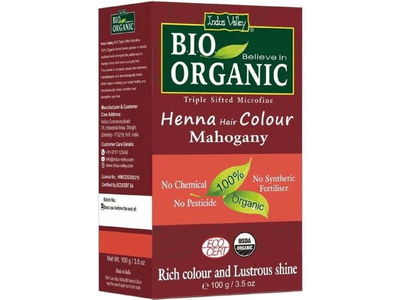 Indus Valley Bio Organic 100 % ren och naturlig henna hårfärg (MAHOGANY)