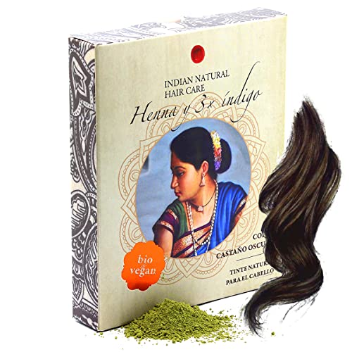 Henna och 3 x indigo - mörkbrun färg - naturlig hårfärg - pulver... (200g)