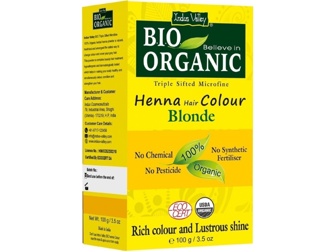 Indus Valley Bio ekologisk naturlig henna hårfärg för kvinnor blond 100 g | 100 % grått hår täckning och långvarig hårfärg | vegansk och grymhetsfri I örthårfärg för alla hårtyper