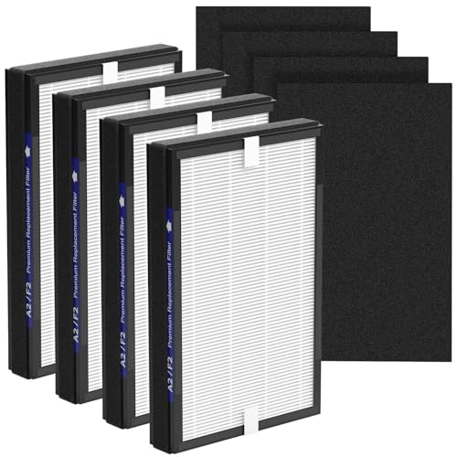 HOSECES HOSECES AP2 PM1240B påfyllningsluftfilter kompatibelt med Airversa Purelle AP2 luftrenare, 4-pack 2-i-1-filter H13 HEPA-aktiverat kol 3-stegs filtreringsfilter