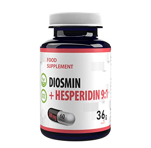 Diosmin Hesperidin 500mg 60 Veganska kapslar, Analyscertifikat från AGROLAB Tyskland, Hög styrka, Gluten- och GMO-fri
