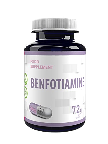 Benfotiamine 250mg 120 veganska kapslar, analyscertifikat från AGROLAB Tyskland, hög styrka, glutenfri, GMO-fri