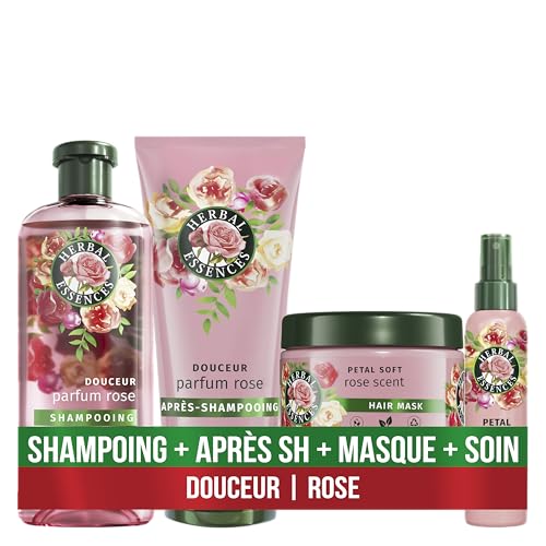 Herbal Essences Routine Douceur Rose Parfym med schampo 250 ml, balsam 200 ml, mask 500 ml och lätt spray 145 ml. Hjälper till att göra håret torrt silkeslent
