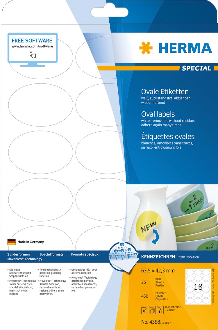Etikett avtagbar Herma Special oval 63,5x42,3mm 450st/fp
