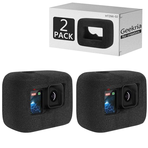 Geekria för skapare vindskydd vindmuff kompatibel med GoPro Hero 13, 12, 11, 10, 9 actionkamera, höljesramfodral, videoljudsreducerande svamptillbehör (svart / 2-pack)