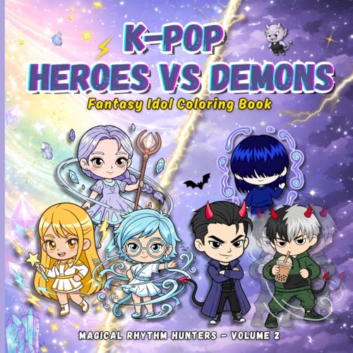 K-Pop Heroes vs Demons: A Fantasy Idol Story & Coloring Book | 60 Bold & Easy Pages of Music, Magic & Adventure | Magical Rhythm Hunters: Volume 2 | Gift for K-Pop Fans | 8.5 x 8.5”