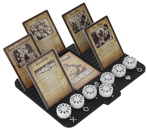 Feldherr Dashboard med räkningshjul kompatibel med HeroQuest (2021) – lekstöd för enkel karaktärshantering tack vare kortplatser och praktiska räkningshjul, färg: svart vit