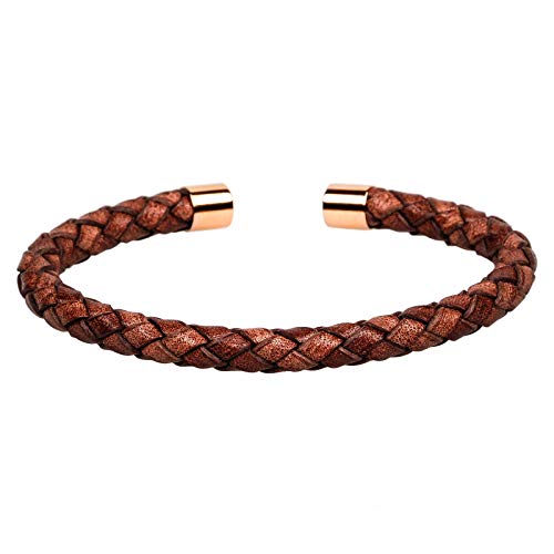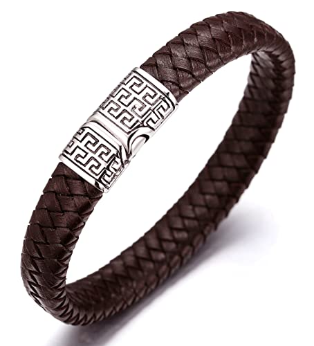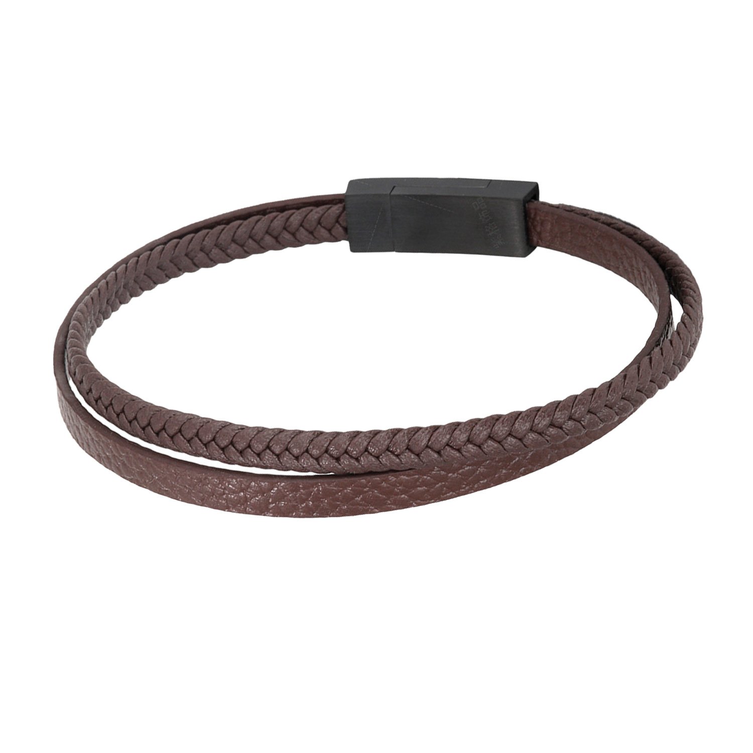 Casisto.J Läderarmband, herr, armband män, läder, rostfritt stål, gravyr, svart, brun flätat med magnetlås, 20, Läder