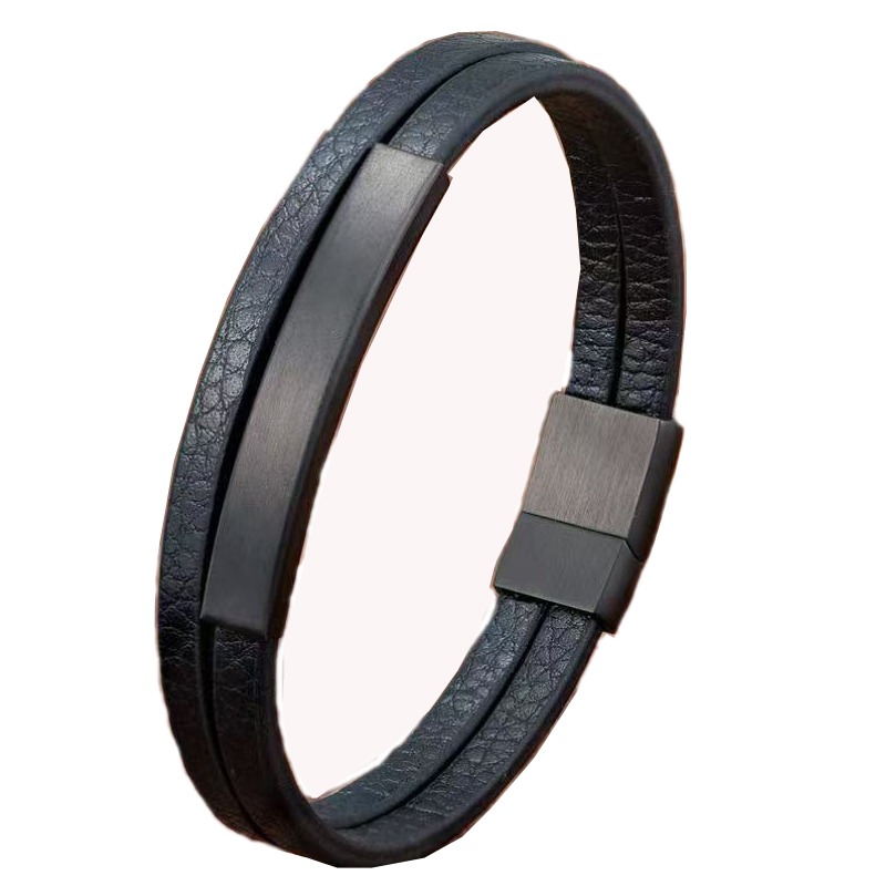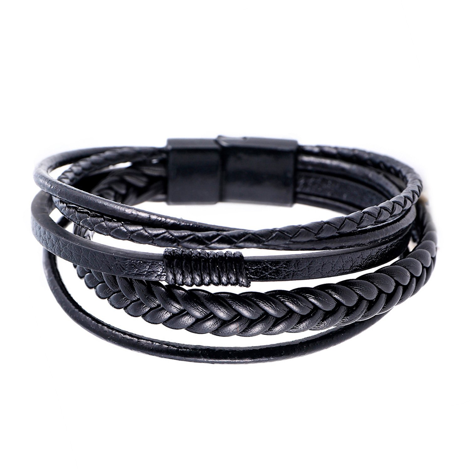 Läderarmband herr, flätat läderarmband för män och kvinnor lindad armband med magnetlås, armband rostfritt stål läder, läder armband svart för män, 21cm, Läder, Ingen ädelsten