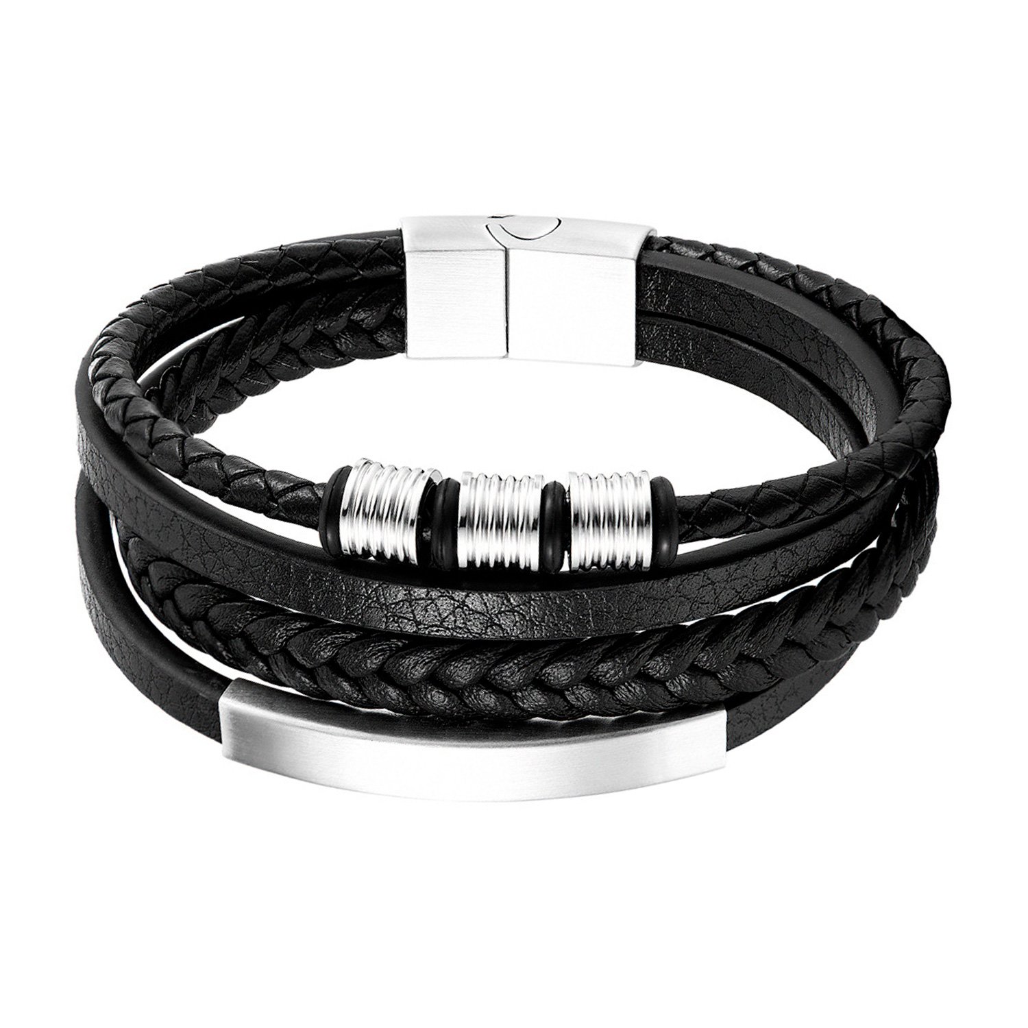 Casisto.J Läderarmband, herr, armband i läder för män, rostfritt stål, gravyr, svart, brun, flätat, med magnetlås, anpassningsbart, 21, Rostfritt stål