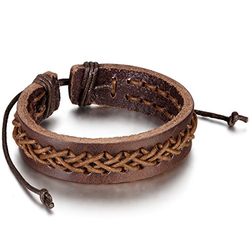 Flongo herr vintage flätad tribal evighetsskylt brun läderrem surfare manschett armband, passar 20–25 cm handled, 10 inch, Läder