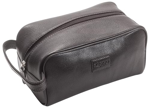 Zippo-necessär – Läder – Brun – För herr och dam – Necessär att hänga med dragkedja