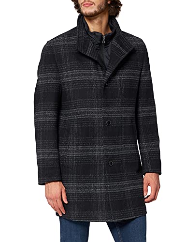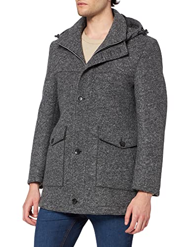 bugatti Herrkappa klassisk ullrock med ståkrage i en bekväm passform, Mörkgrå, 52