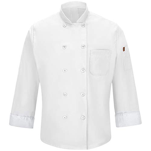 Red Kap Långärmad herrkappa med tio knappar och mimix och Oilblok, Vitt, XXL