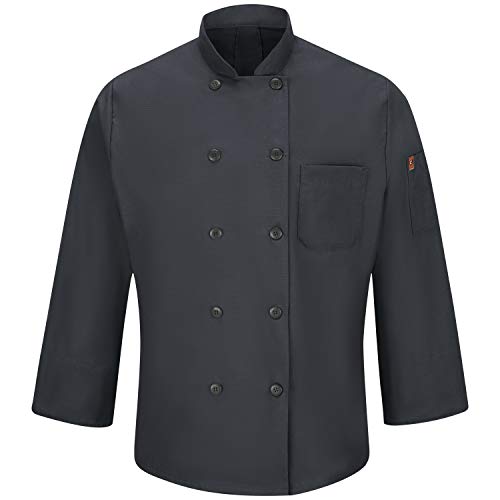 Red Kap Långärmad herrkappa med tio knappar och mimix och Oilblok, Träkol, 4XL