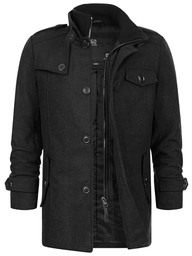 Indicode IDBrandan Herrkappa, ullrock, vinterjacka med ståkrage, Svart (999), XL