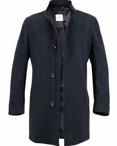 bugatti Herrkappa klassisk ullrock med ståkrage i en bekväm passform, marinblå, 98 Tall