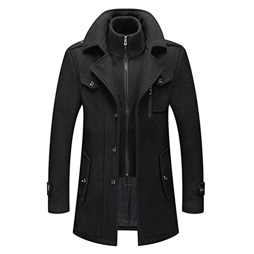 SHINROAD Herrkappa, enfärgad, mjuk och bekväm, falsk tvådelad, höst-vinter, med dragkedja, knappar, herrjacka för dagligt bruk, Svart, XXL