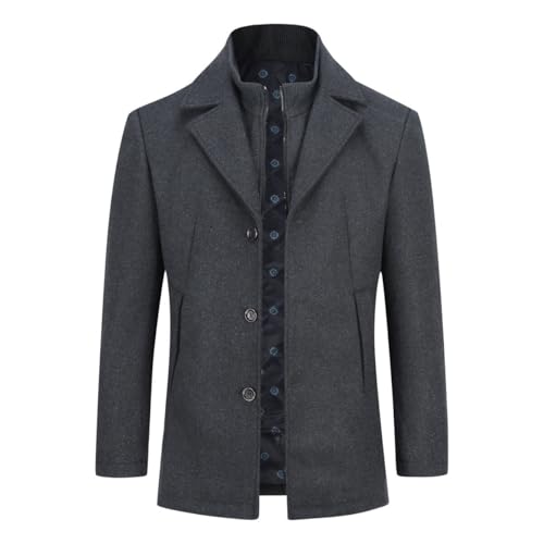 Allthemen Vinterrock för män, kort herrkappa, svart ullrock, ståkrage vinterkappa för män, varm kort vinterjacka med smal passform, businessjacka, Grå (vadderat innerfoder), XXL