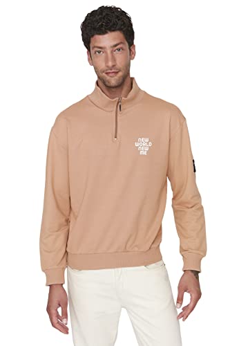 Trendyol Man herrkläder avslappnad enkel stående krage stickad tröja, BEIgE, M