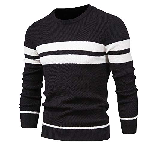 Hösttröja herrtröja O-hals långärmad smala tröjor män vardaglig tröja herrkläder, Svart, L
