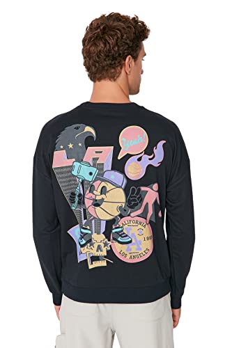 Trendyol Man herrkläder överdimensionerad bas stickad tröja med rund hals, marinblå, M, marinblå, M