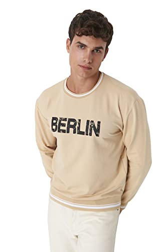 Trendyol Herr herrkläder avslappnad bas stickad tröja med rund hals, BEIgE, L