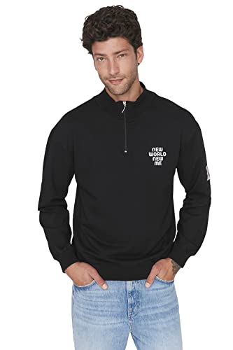 Trendyol Herr herrkläder avslappnad bas stående krage stickade tröjor, Svart, S