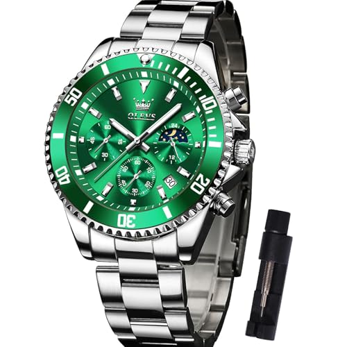OLEVS Analog herrklocka stor urtavla datum vattentät ljus lyx skrivklockor för män kvarts rostfritt stål, 2870 grön urtavla/silverarmband, rotondo, armband
