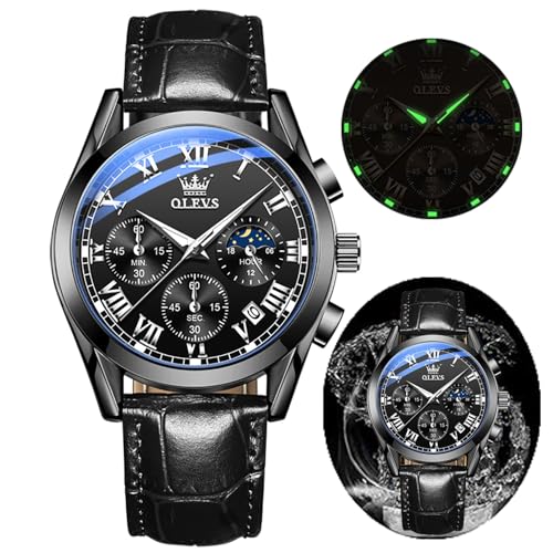 OLEVS Kvarts kronograf klocka för män, läderband, guldfodral med datum, rostfritt stålklocka, herrklocka, mode, avslappnad, Gw-g2872-läderrem blå urtavla, rem