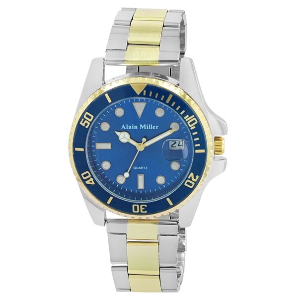 Alain Miller Herrklocka i rostfritt stål / Armbandsur med datum - Silver/Guld/Blå