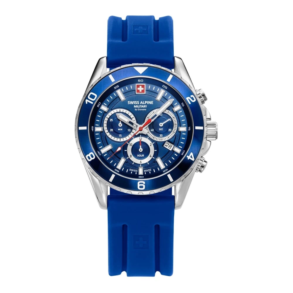 Swiss Alpine Military, Accessoarer , unisex, ONE Size, Herrur Sierra, kronograf, rostfritt stål, blå-silver, Artikelnummer 7034.9835