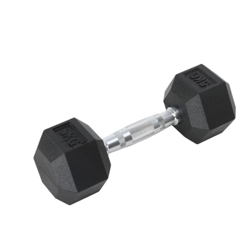 TREXO Hantel 5 kg hexagon hållbar gummerat gjutjärn för styrketräning hemma med ergonomiskt handtag stabil och mångsidig hantel hex HXD50