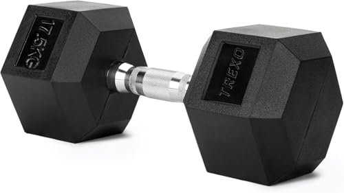 TREXO Hexagon-hantlar 17,5 kg hexagonhantlar med slitstarkt gummerat gjutjärn för styrketräning med ergonomiskt förkromat handtag vikter träning hemma hantel för män och kvinnor