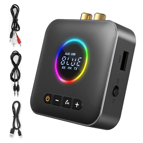 Beedove 3-i-1 Bluetooth 5.0 ljudadapter för TV PC-stereo, FM-sändare Bluetooth-sändare med Aux/RCA/optisk, stöder TF-kort USB och fjärrkontroll HiFi Bluetooth-mottagare