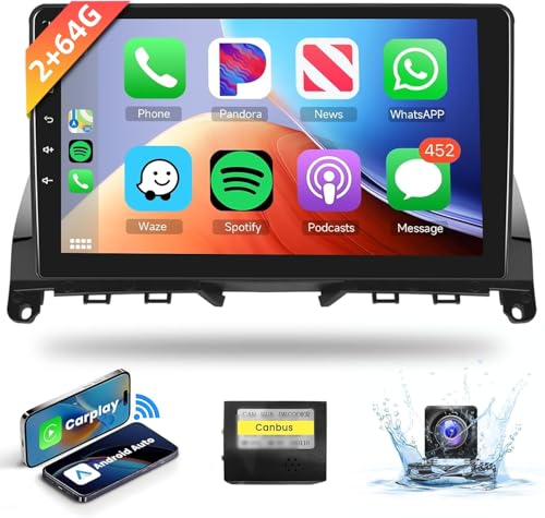 【2+64G】 podofo 9" bilradio 2 DIN för Mercedes C-klass W204 S204 2007-2010 Android 13 Carplay trådlös Android Auto med pekskärm WiFi/GPS HiFi Bluetooth RDS/FM-radio med AHD bakåtkamera